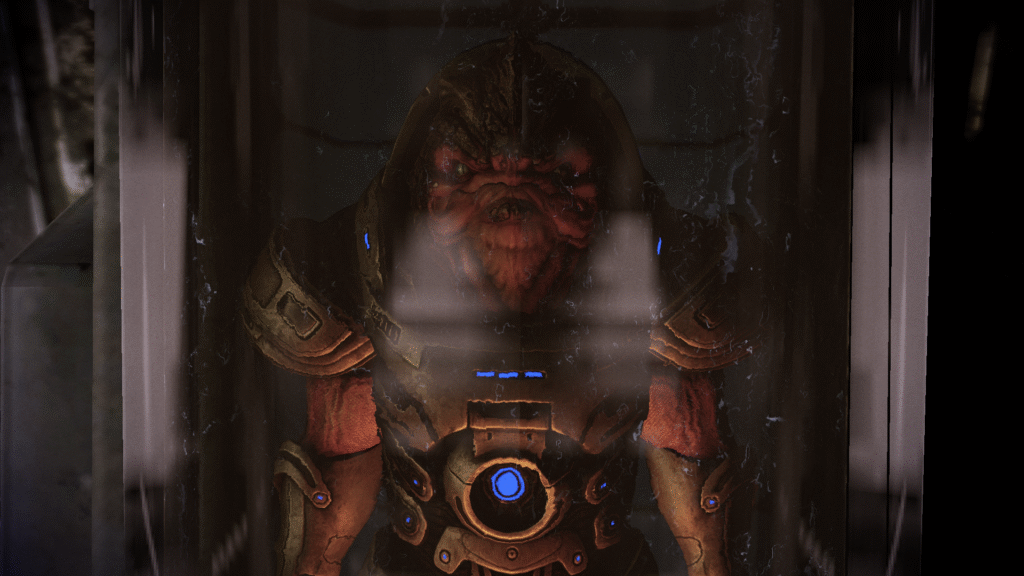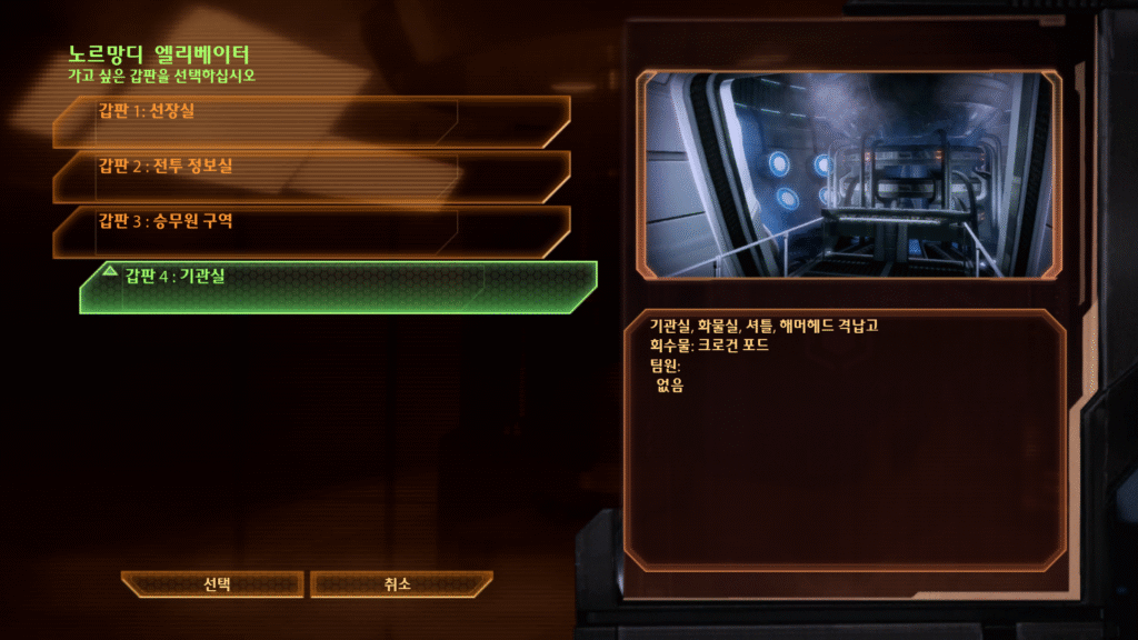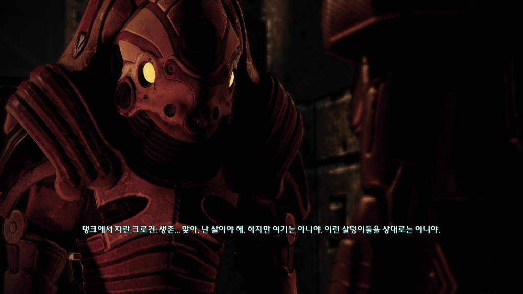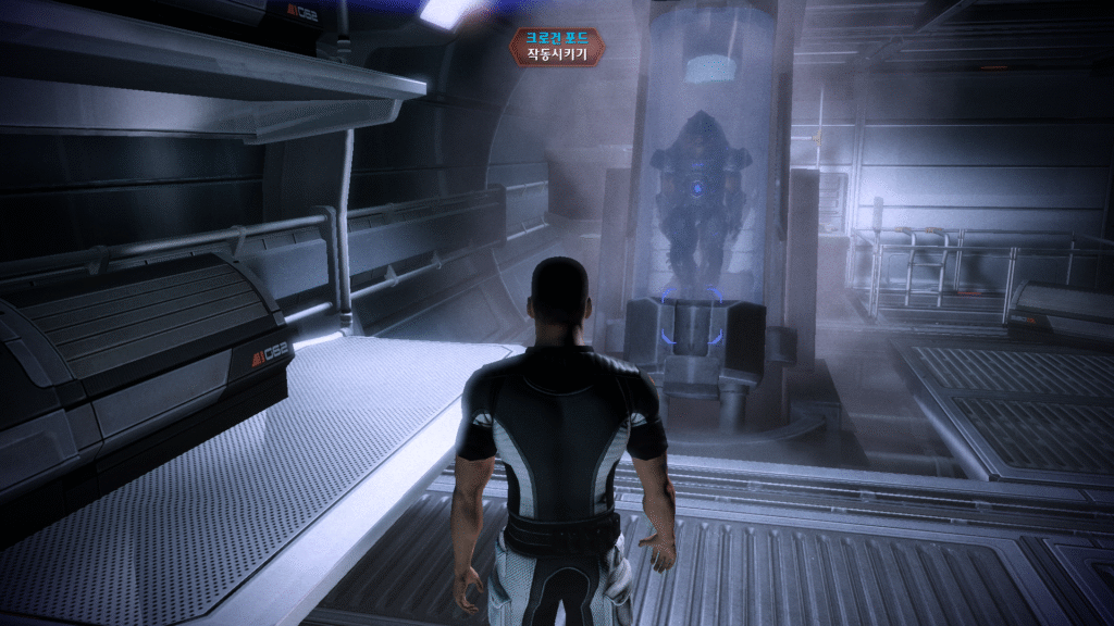 이후 함선으로 돌아와 중앙에 맵이 있는곳 바로뒤의 엘리베이터를 탄후 갑판 4의 화물실로 가서 크로건 동료인 그런트를 깨울지 말지 결정해야 하는데, 당연히 그런트를 얻을려고 그 고생을 한 것이므로, 생각하지 말고 깨워줍니다.