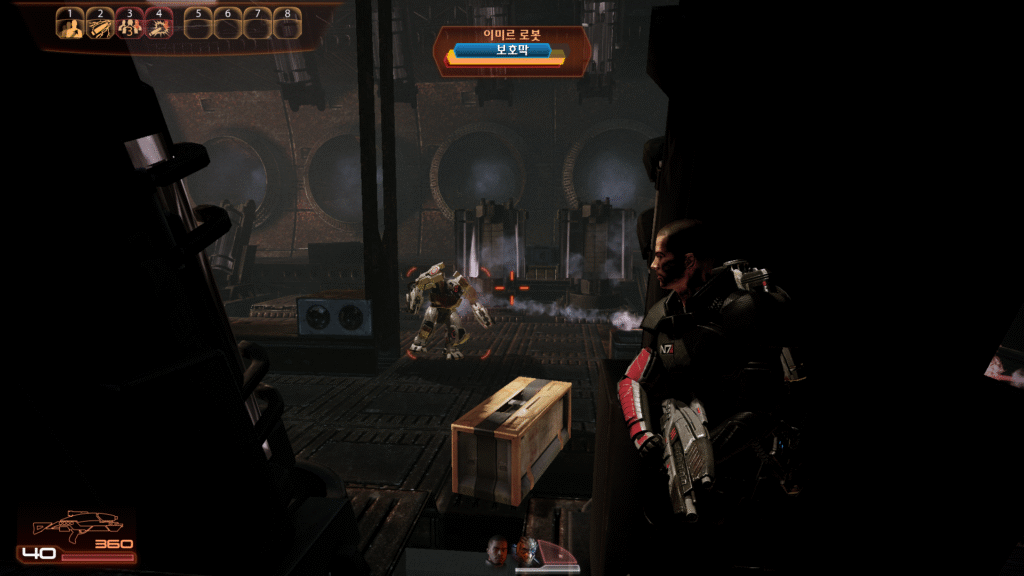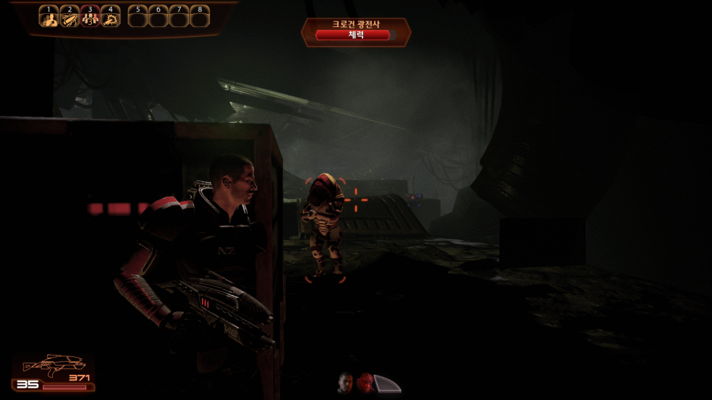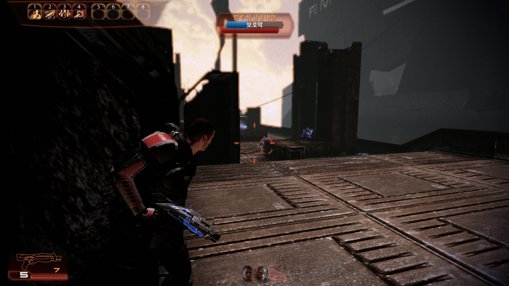 이제 보스전이 진행되는데, 크로건 아미르로봇 용병대장등 모두 할것 없이 모두 쏟아져 나오기 때문에, f5 로 저장을 미리해주시고 먼저 용병대장은 로켓런처를 쏴대므로 스나이퍼건으로 우선적으로 제거해 줍니다. 나머지 크로건은 샷건으로 이미르로봇은 교란탄 등을 이용해 빠르게 처리해 줍니다.