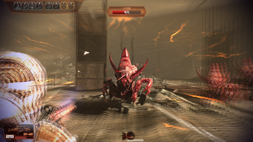다음 단계로 가면 크라젠 이라는 히드라 처럼 생긴 놈들이 나오는데, 저글링 보다 훨씬 막강합니다. 샷건을 이용해 적들을 제거하면 조금 수월하게 상대할 수 있습니다. 적들이 압뒤로 사방에서 나오므로 뒤를 항상 자주 확인하며 싸워야 합니다.