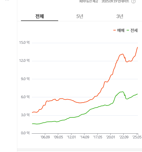 서울 핵심 지역 아파트 들은 지난 10년 동안 유래없는 상승세를 기록했습니다. KB 시세기준으로 5.5억 하던 서울시 아파트 평균은 25년 4분기 현재 14.4 억 이 되어 거의 3배에 가까운 상승을 했습니다.