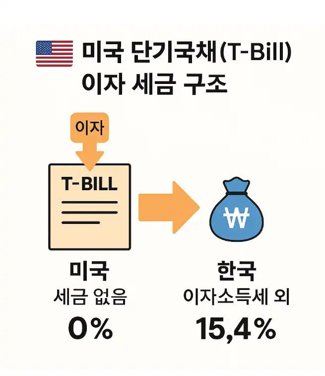 한국 거주자가 국내 증권사를 통해 미국 단기국채를 사면, 비거주외국인 으로 분류됩니다. 미국 국세청은 비거주 외국인이 받는 채권이자는 미국정부가 원천징수 하지 않습니다. (면세) 즉 이자 (예 4.04%) 그대로 이자를 수령할 수 있습니다.